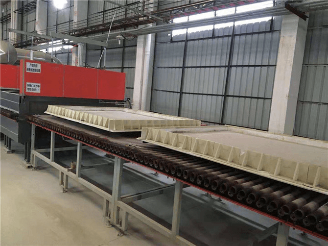 (2)工藝流程:原料破碎→配料→球磨→噴霧干燥造粒→布料→燒成→切割→包裝。