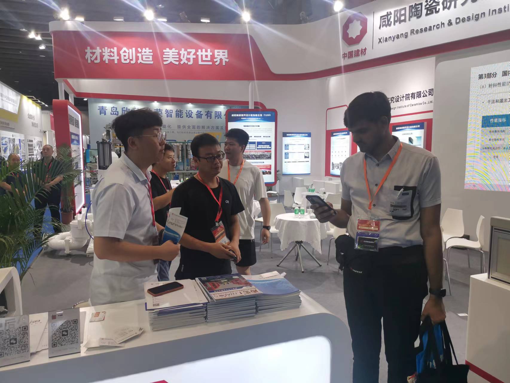 本次展會集中展示了咸陽陶瓷院的科技創新技術及成果,包括:先進陶瓷材料、環保催化劑及工程設備、干法制粉、YB-300出口型柱塞泵、固廢熱解催化評價平臺、靜摩擦系數測定儀以及陶瓷磚恢復系數測定儀等。我院展臺設計新穎、顏色燈光鮮亮、格調醒目,利用多種尺寸的大型噴繪圖片、大型LED屏視頻展示、多臺裝備實物展品、資料圖書等形式進行宣傳推廣,參展期間,我院展臺人流不斷,工作人員專業熱情地接待各國客戶并進行耐心講解,現場交流氣氛熱烈,受到國內外客戶的高度關注,收獲滿滿。