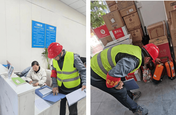 此次檢查重點查看用電插板、配電箱是否存在安全風險,消防設施配備是否到位,室內外消火栓是否完好有效、承租戶用電線路是否安全、火災自動報警系統運行是否正常、滅火器材配備是否符合規定等情況。檢查過程中,工作人員向各部門安全員了解本部門用電器情況,給各部門及承租戶進行消防知識宣傳教育,從源頭上預防火災事故的發生。