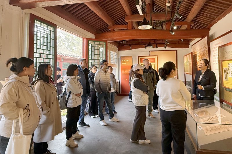 當日上午,支部成員懷著肅穆的心情抵達平津戰役指揮部宋莊舊址。走進這座承載著厚重歷史的院落,斑駁的墻壁、古樸的桌椅、泛黃的文件手稿,瞬間將大家帶回了70余年前那個戰火紛飛的年代。在講解員的細致引導下,支部成員依次參觀了戰略部署、進駐宋莊、解放天津、戰和博弈、保護古都和北平解放等展區和大禮堂,每一處遺跡、每一件文物背后的故事,都讓大家深刻感受到平津戰役期間,革命先輩們在艱苦環境中運籌帷幄、決勝千里的智慧與勇氣。